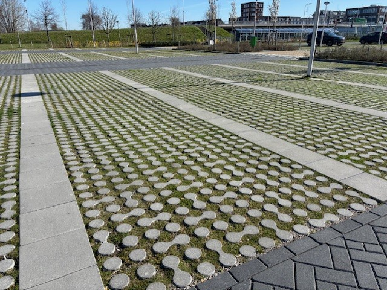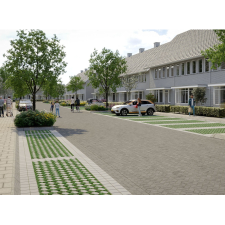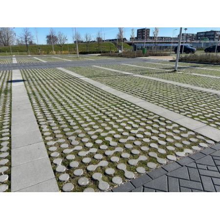 Mede door het formaat, de dikte en de wapening is dit een duurzame oplossing voor de verharding van terreinen waar groen en/of infiltratie wenselijk is.